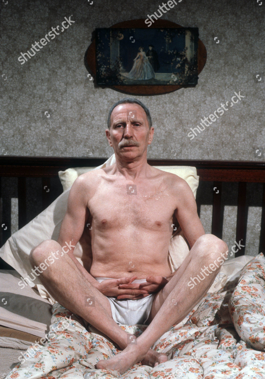 And still further unexpected dispatches - - Alfie got most of his kit off in David Mercer's Rod of Iron (1980), wearing aged-up silver hair and taking his ubiquitous signet ring off in order to play Nigel Hawthorne's father. One would not have expected this serious role to involve quite so much nudity, but many of the promo photographs from that show featured unexpected naked Alfie, including this one: